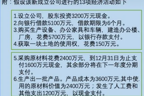 一新公司的头等大事(资金到位、采购固定资产和无形资产),先来看第一个绿色框内的四个经济活动。