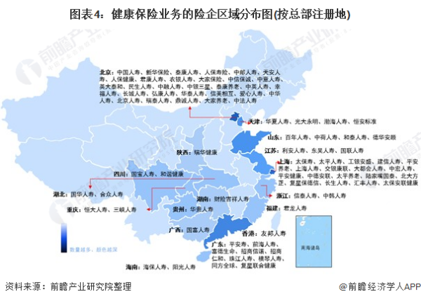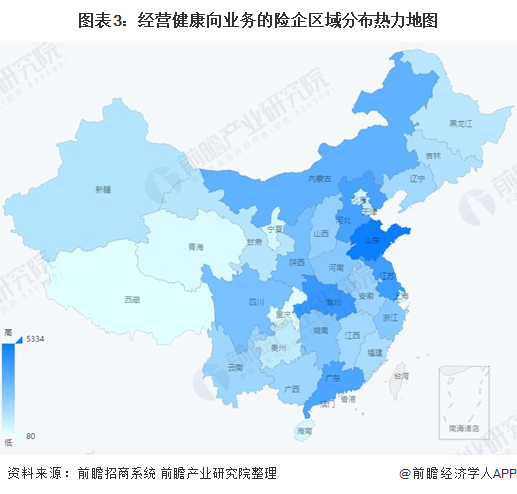 健康保险行业产业链区域热力地图:全国范围均有覆盖