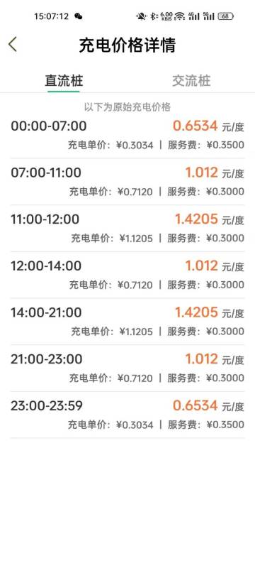 就算换个地方,按照最便宜的充电时间段充电,同样的充电功率单价也要1.19/kWh,充满也是71.4元。