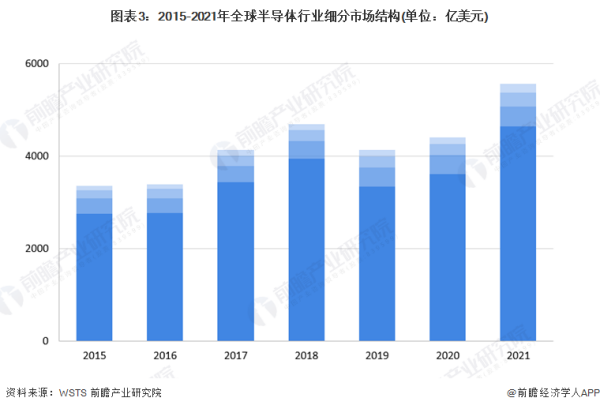 此外,2021年全球光电子器件、分立器件、传感器市场规模分别为434.04、303.37、191.49亿美元,占比分别为7.81%、5.46%、3.44%。