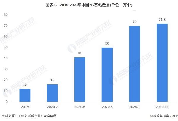 2020年,中国5G正式进入规模商用时期。2020年初突发的新冠肺炎疫情使经济发展承压,3月4日,中共中央政治局常务委员会召开会议,要求加快5G网络、数据中心等新型基础设施建设进度,5G作为新型基础设施的战略地位进一步凸显。根据工信部数据显示,截至2020年末,我国累计建成5G基站71.8万个,推动共建共享5G基站33万个,5G网络已覆盖全国地级以上城市及重点县市。