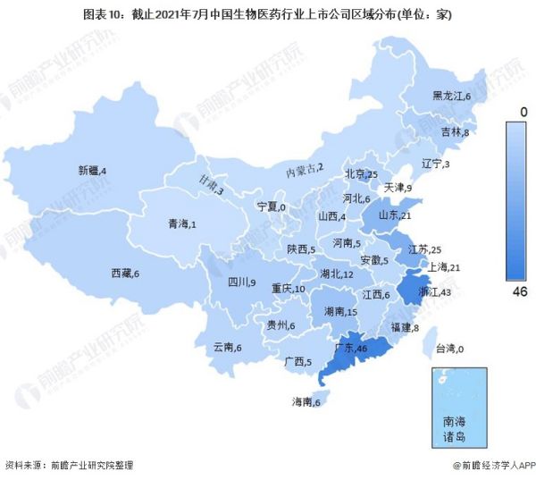 1、区域竞争:广东为生物医药行业上市企业聚集地