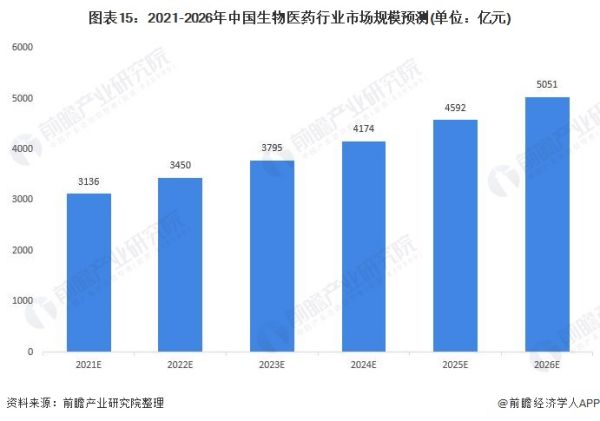 综合上述分析,新冠疫情加大了对疫苗、血制品及相关试剂的需求,“十四五”规划对生物医药这一新兴产业大力扶持,前瞻产业研究院认为,2021-2026年我国生物医药行业市场规模将保持10%-15%的增速,预计到2026年我国生物医药行业市场规模将超过5000亿元。