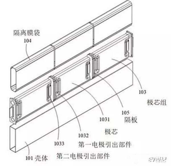 最后就是比亚迪的刀片电池了,由于目前还没有实物图,先凑合用专利图看个大概...
