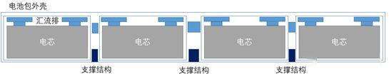 传统的模组为了保证其作为一个独立的单元具有良好的力学性能,需要侧板端板等防护结构,因为多级集成也需要低压线束、高压连接等电气元件。