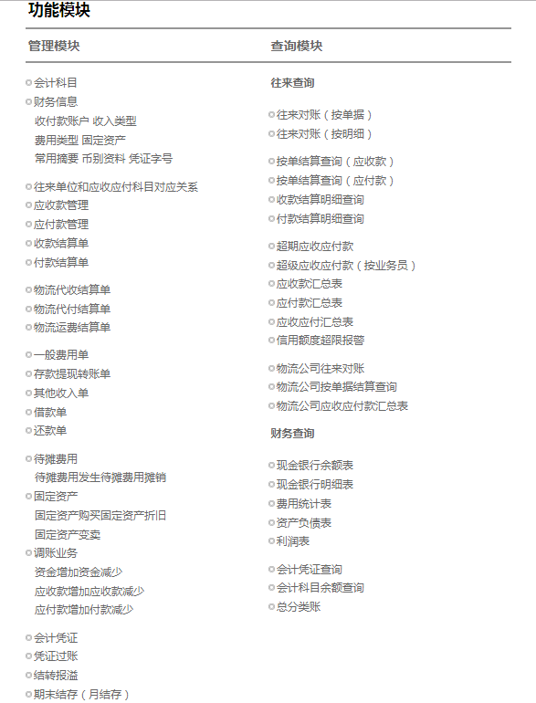 用友T3-用友通标准版包括账务(往来管理、现金银行、项目管理)、出纳、报表、工资、固定资产、财务分析、业务通(采购、销售、库存)、核算、票据管理模块。