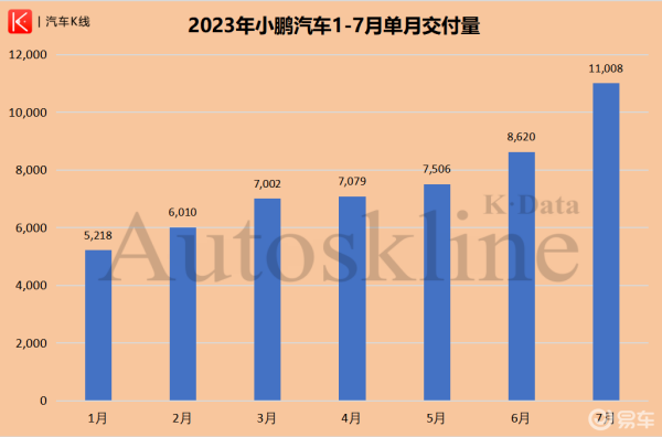 2022年1-6月,小鹏汽车累计交付6.9万辆,是《汽车K线》统计6家造车新势力车企中,半年累计交付排行榜的第一位。然而到了2023年,小鹏汽车却始终在排行榜的倒数两位徘徊,1-6月每个月的交付量一直不足万辆。