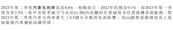 对此,小鹏汽车给出的解释为:与G3i有关的存货减值及存货采购承诺亏损,导致对第二季度汽车毛利率产生了约4.5个百分点的负面影响。另外,促销增加及新能源汽车补贴届满,也对此有一定影响。