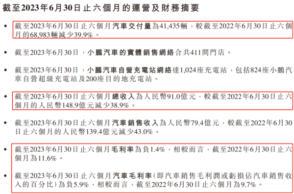 1 营收大幅下滑,毛利率转负8月18日,小鹏汽车披露2023年中期财报。数据显示,2023年上半年,小鹏汽车总收入为91亿元,累计交付新车4.14万辆,上半年总收入及累计交付量同比降幅均接近40%,形势堪忧。