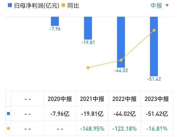 除此之外,财报显示小鹏汽车的毛利率由正转负,从去年中期财报披露的11.6%,降至如今的-1.4%,净亏损从2022年上半年的44亿元,扩大到今年上半年的51.4亿元。