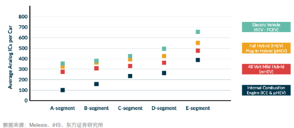 这个结果就是,在B级新能源车中,模拟芯片单车用量从燃油车的160 颗提升到了近400颗。