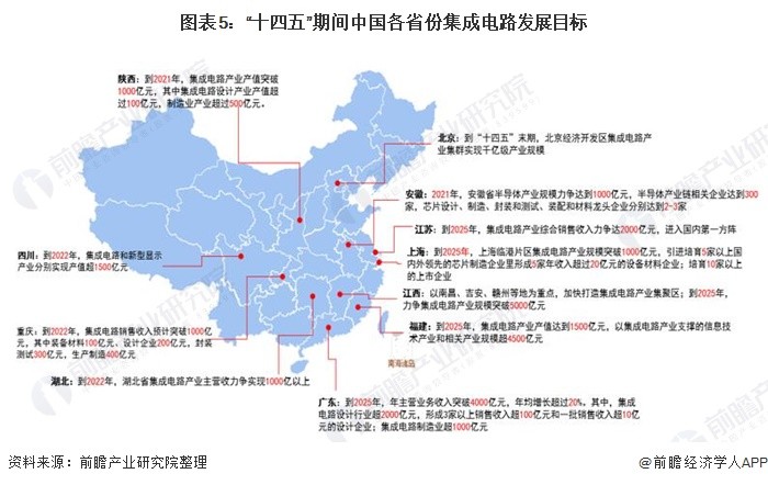 4、“十四五”期间各省份出台规划促进集成电路发展