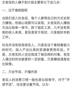 在全民努力赚钱的现代社会,为何老实人很难成为富人?