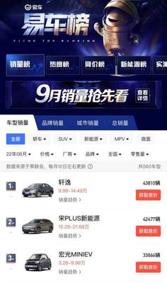 易车App提供销量、热度、点评、降价、新能源、实测、安全、零整比、保有量等榜单数据。如需更多数据,请到易车App查看。