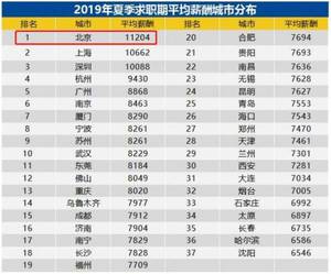 如果夫妻双方都是在北上广深等一线城市打工,我们以北京为例,下图是2019年的求职平均薪酬,其中北京平均薪酬达到了11204元,但是我认为这个平均薪酬偏高了,我们就降低标准,以每个月8500元为标准,这个水平在北京不算高,但也不算是托后腿。如果两夫妻的收入是一样的话,那么每个月家庭的整体收入能达到17000元,在北京没买房、买车的话,两夫妻一个月存4000元左右应该不算太难,一年的时间应该4.8万,也就是差不多5万左右。当然如果在北京买房或者买车,每个月要还贷款,一整年存不到钱也属于是正常水平。