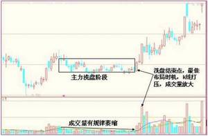 3、在洗盘结束时,成交量突然放大,并且k线相对于之前的小阳、小阴而言,会出现明显变化,最少是中线线或者大阳线,如果出现这样的情况,朋友们就要重点关注了,很有可能是主力洗盘结束,主升浪即将启动前兆