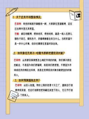 最后巴菲特也讲到了石油的问题,还有改革的问题,但是大家最关心的还是现金储备跟股票回购的问题。目前,世界经济的形势并不是特别好,在这种形势之下,储备现金是非常必要的,但如果是做股票的话,还是要观察一下。巴菲特本身自己的做法值得很多人模仿学习,简称抄作业。关于巴菲特的语录,有三万字的实录,内容非常精彩,值得一看。