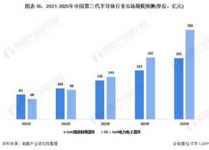 第三代半导体已经写入“十四五”规划。在国家政策的支持和下游需求增长的背景下,预计到2021-2025年,我国SiC、GaN电力电子器件应用市场将以45%的年复合增长率增长至2025年的近300亿元;GaN微波射频器件市场规模将以25.4%的年均复合增长率增长至2025年的205亿元。2025年第三代半导体整体市场规模有望超过500亿元。
