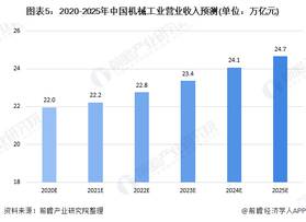 整体来看,2020年受疫情影响,预计行业营业收入与2019年相比增幅较小,2020年收入约22万亿元。随着行业的持续发展,预计到2025年将达24.7万亿元。