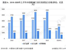 2020年上半年,在新冠疫情的冲击下,我国机械工业进出口规模均有下降,2020年上半年行业进口总额为1386亿美元,出口总额为2056亿美元,实现贸易顺差670亿美元。