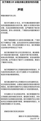 本周一张腾势D9车主联合声明在网上曝光,根据声明显示,车主联合投诉腾势D9的车载冰箱无法达到理想的制冷效果,且冰箱工作时前排容易喷出热风,与官方宣传不符。