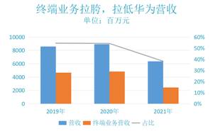 其中,消费者业务(现已更名为终端业务)下滑最为明显。2019年至2021年消费者业务营收分别为4673.04亿元、4829.16亿元和2434.31亿元。