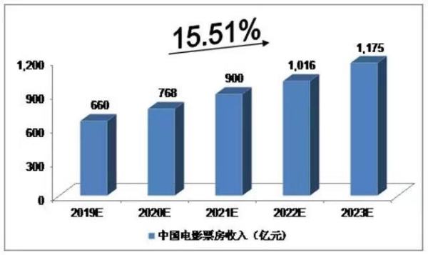 2018年全年中国的电影票房已经高达609亿,并且后续还会保持15%左右的速度增长。