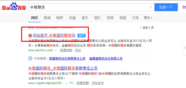 1.百度搜索“中银期货”,点击进入中银国际期货官网。