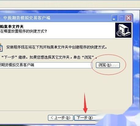 点击下一步以后出来安装保存位置页面,你可以点击红圆圈内的“浏览”选择安装位置,只要自己知道记得就行,任何点击下面红箭所指的“下一步”,点击下一步以后出来如下图2的界面,快捷方式的放置位置默认放在刚才安装的位置,不用动,直接点击“下一步”