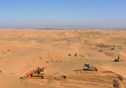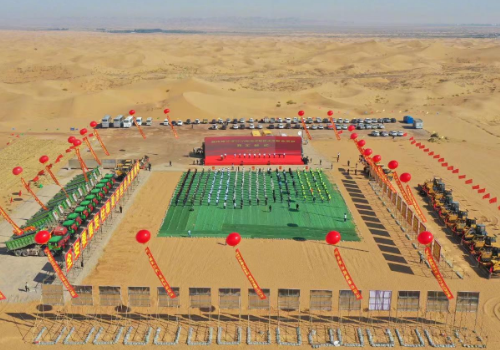 腾格里大漠新能源3 GW新能源基地建设工程启动仪式。该项目位于中卫市沙坡头区迎水桥镇,是全国首条以发展大面积光伏基地、输送新能源的特高压线路“宁电入湘”的重要支撑项目。
