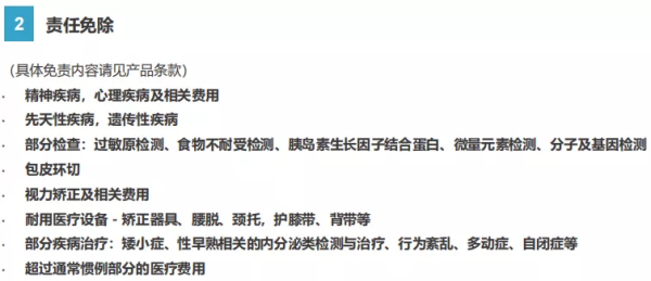 例如,意外事故所需的整形手术在承保范围内,而纯医美则不在承保范围内。提醒大家,看到每一项责任豁免是非常重要的。