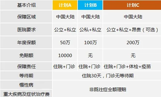 计划B/C额外有:大型检查费、门诊手术费、理疗费、中医针灸疗法和顺势疗法、中医治疗费