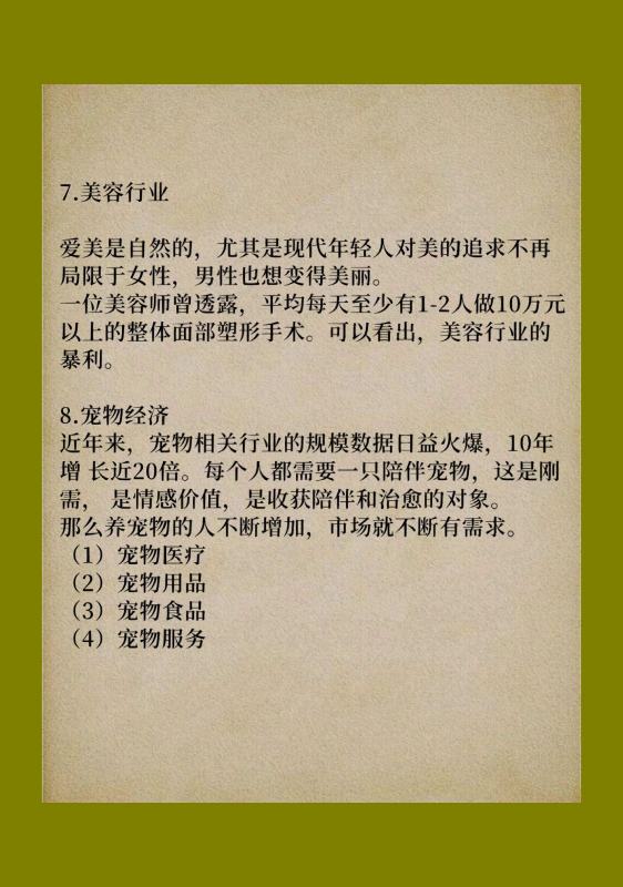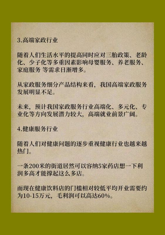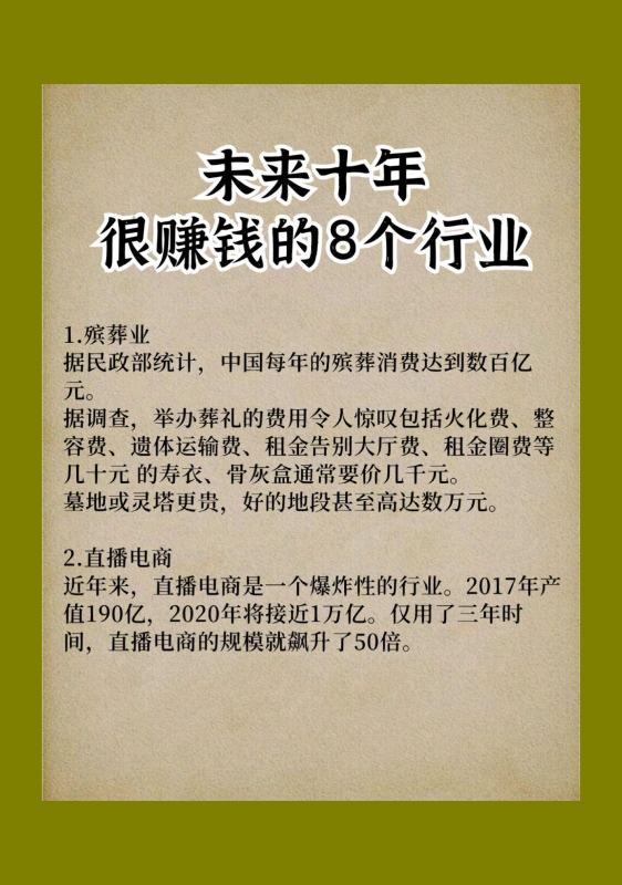 灵魂的痛苦是最大的伤,中国人普遍没有宗教信仰,为别人提供精神上的寄托,将成为一种行业。谁在某个领域具有专长,如心理咨询师、健康管理师,或是能给予别人精神寄托的讲师,都将成为高收入阶层。