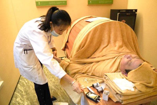 有了功效显著的八大方剂药包,还要有汗法调理的设备仪器,即远线外光波抗原热修复舱。将药包翻炒加热后,裹在调理人背部,躺在调理舱中。这个舱是分段式加热的。再经过汗法的核心,发汗,控汗,控温,收汗等一系列技法操作,形成完整的裹药汗法调理。