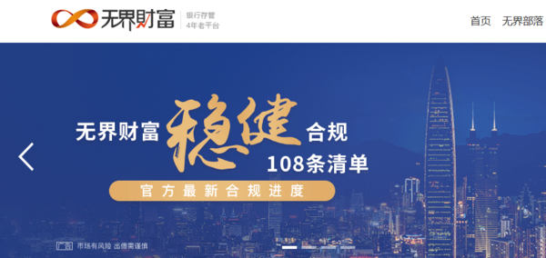 推荐:【无界财富】,P2B五年老平台,从未逾期。从他们的项目来源看,是由国有金融机构21层风控、银行直接存管,而且有受法律保护的电子签章,比较安全稳健。