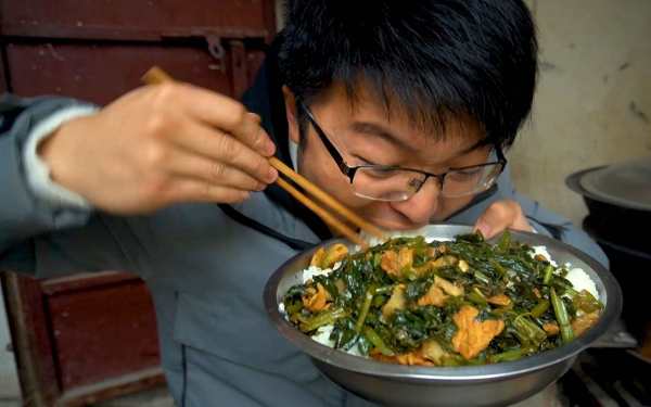 他的日常就是在各个平台分享一下自己每天的做饭历程,并且上传"吃播".以B站为例(这也是他最主要的平台)他每天都会更新视频,点击量大概在100多万.由于食材大多简单,再加上自己很能吃蒜,梗就被更多的人熟知了.久而久之,就出现在了B站推荐页面,良性循环下来,就成为了百万粉丝的UP主了.