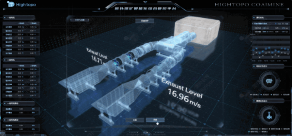 相较于传统静态模拟图式的通风机房在线监控系统,3D 可视化通风系统能更加生动形象的展现在人眼前,使其内容具有可读性与可控性。两侧 2D 面板数据提供重要运行参数的实时变化和历史趋势查询,提供自定义趋势查看、数据分析、曲线对比等功能,点击场景中的设备可显示设备属性信息。对于超限时状态设备进行及时报警,在短时间内为运维人员提供所需信息要素,提升运维监测效率。