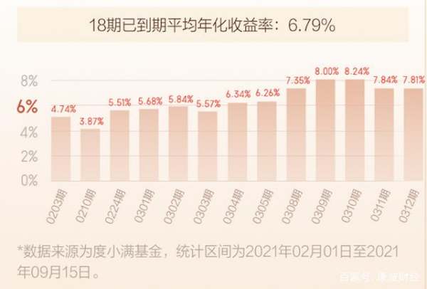 4、收益可观。度小满金融近期发布了定期盈半年报,根据度小满基金在今年2月1日到9月15日的统计数据来看,18期已到期的定期盈180天的平均年化高达6.79%(历史收益供参考,具体以实际显示为准)。