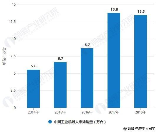 2014-2018年中国工业机器人市场销量统计情况