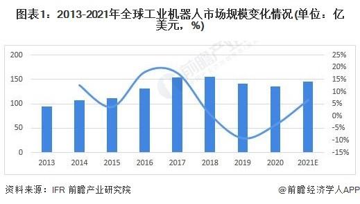 根据IFR公布的数据,2013-2018全球工业机器人市场规模一直处于稳步上升趋势,2018年已经达到155亿美元,但是在2020年这一趋势下降到了136亿美元。2021年再度迎来反弹,增至145亿美元。总体来看,全球市场规模将会进入稳步增长的时期。