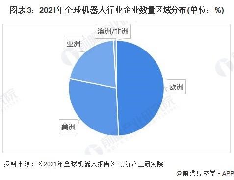 在机器人领域,目前发展处于前列的国家中,西方国家以美国、德国和法国为代表,亚洲以中国、日本和韩国为代表。前瞻结合IFR发布的《2021年全球机器人报告》中统计,全球机器人企业中欧洲机器人供给商占全球总数49.27%;美洲机器人供给商占全球总数的28.91%;欧美机器人供给商合占全球总数的78.18%。