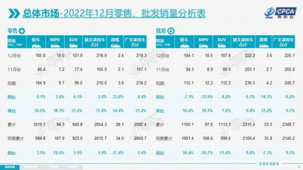 5月19日,乘联会秘书长崔东树发文称,因今年春节属本世纪最早,在预期刺激政策带来的观望、促销战进一步助长观望情绪等综合因素的影响下,1-4月累计零售592万辆,同比下降1%。受促销混乱带来的观望气氛影响,4月乘用车市场零售达到163万辆,4月零售走势好于预期。由于保增长的需要,3月生产较高,4月生产大幅降低,但4月国内燃油车车市回稳较慢,导致4月末的厂家和经销商库存下降到323万台,测算库存可支撑未来零售49天,库存状态大幅改善。
