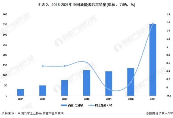 根据中国汽车工业协会统计数据显示,2021年我国新能源汽车销量爆发式增长,达到352.1万辆,同比增长157.6%。2012-2021年,我国新能源汽车销量从2012年的1.28万辆到2021年的352.1万辆,实现了跨越式发展,可以看出我国消费者对新能源汽车的消费需求逐年攀升。