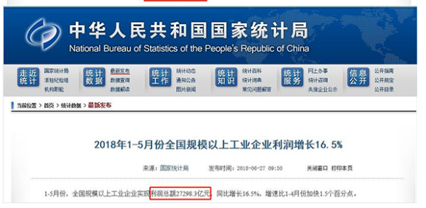 国家统计局公布了2018年1至5月全国规模以上工业企业利润数据,细心的网友对比去年同期数据发现:2018年工业利润较2017年减少了1700多亿元,但增速仍是正的,由此引发热议。国家统计局工业司6月29日就此事专门刊文回应质疑。