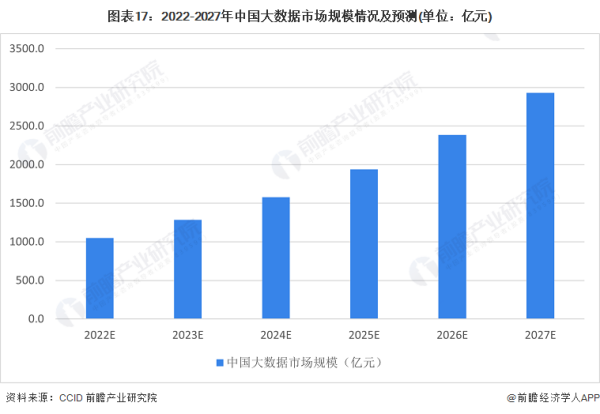 大数据作为新一代信息技术的重要标志,对生产制造、流通、分配、消费活动以及经济运行机制、社会生活方式和国家治理能力均产生重要影响。伴随国家快速推动数字经济、数字中国、智慧城市等发展建设,未来大数据行业对经济社会的数字化创新驱动、融合带动作用将进一步增强,应用范围将得到进一步拓宽,大数据市场也将保持持续快速的增长态势。预计2027年我国大数据市场规模将达到2930.9亿元,未来六年复合年增长率为22.6%。