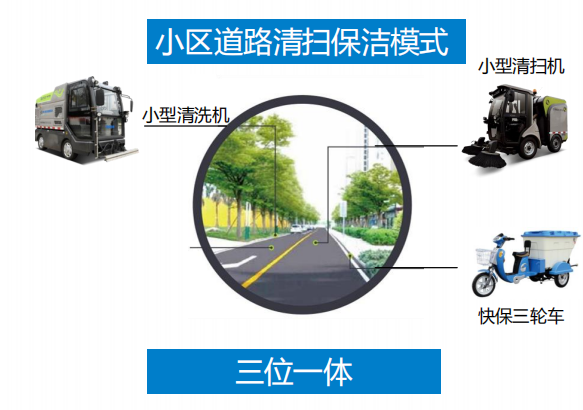 下图为盈峰中联环境公司智能小扫小区道路清扫保洁模式: