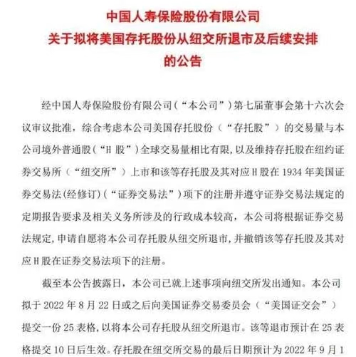 中国人寿等5家中企宣布启动美股退市,此次退市会有哪些影响?