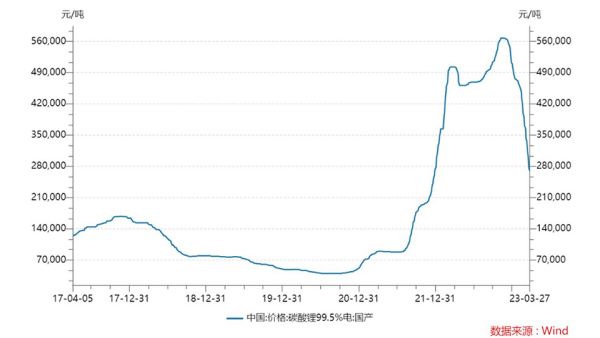 整个车市,在等待比亚迪/特斯拉降价?让我们再把关键问题进行一个聚焦,锂价的波动,是否会直接和车价产生同比的波动。答案,其实是“未必”。Wind统计了2017年4月至2023年3月共6年的数据,动力电池相关锂价的低点出现在2020年时的5万元/吨左右。