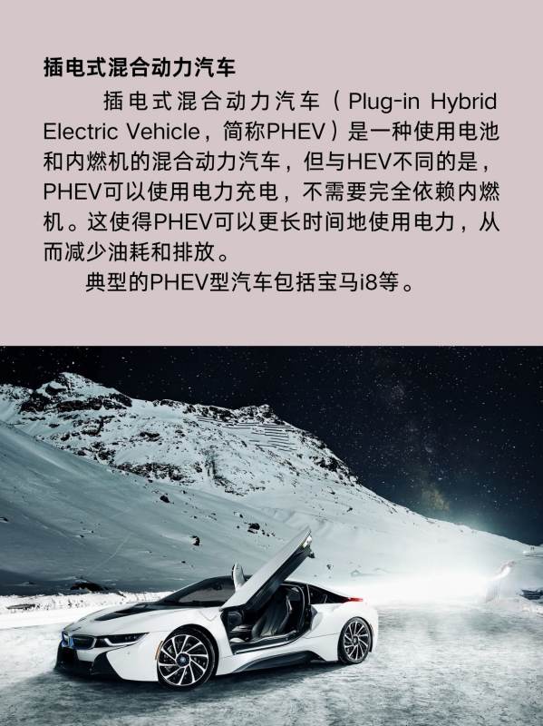 典型的PHEV型汽车包括宝马i8等。