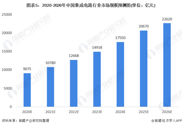 Insights的预测,预计中国集成电路市场规模2020-2025年年复合增长率为9.2%,其中中国国产芯片占比预计将从2020年的15.9%提升至2025年的19.4%,综合考虑IC